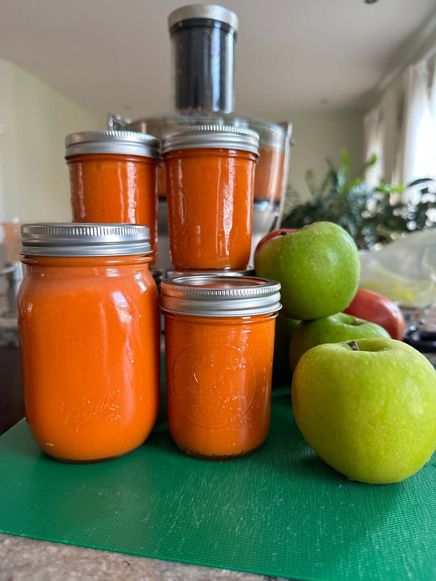 Why carrots and green apples? Green apples like the Granny Smith apples are low in sugar compared to other varieties and are packed with essential nutrients like vitamin C, potassium, and dietary fiber. When juiced with carrots, green apples add a slightly tart flavor that balances the sweetness of the carrots while enhancing the overall nutritional profile of the juice. Always choose organic Granny Smith for obvious reasons.