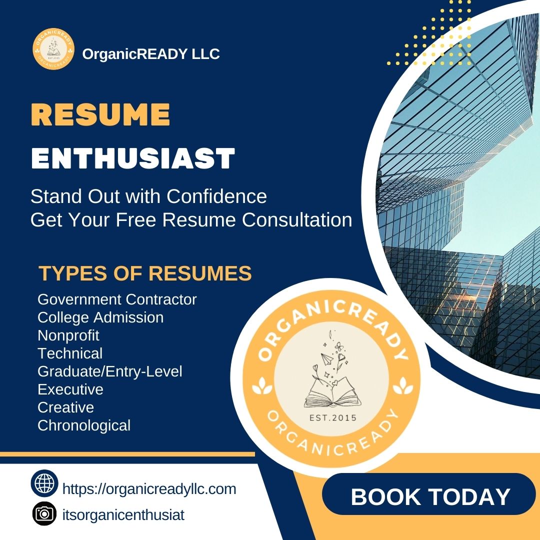 At OrganicREADY LLC, our Resume Enthusiast services offers expert resume crafting to help you shine in a competitive job market. Whether you’re seeking a new role or aiming to advance in your current career, we’re here to help you make a powerful impression.